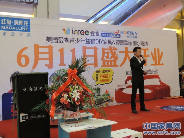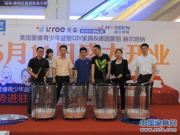 2013年6月11日,美國愛睿DIY家具分店開業(yè)儀式在山東萊陽紅星美凱龍全球家居生活廣場隆重舉行,總經(jīng)理廖志閣親臨開業(yè)現(xiàn)場,社會(huì)各界友人、廣場負(fù)責(zé)人、新聞媒體應(yīng)邀陸續(xù)出席,或送來賀詞花籃與愛睿同仁共同慶祝在萊陽分店的開業(yè)。
