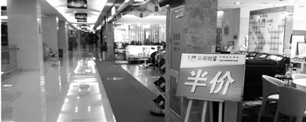 昨天上午,陰雨綿綿。雖然沒(méi)有像傳言那樣停電??照{(diào),歐亞達(dá)濱江店仍然照常經(jīng)營(yíng),但人氣跌到了谷底。記者視線范圍內(nèi)營(yíng)業(yè)員比顧客要多得多,差不多三分之一的店面處于關(guān)門或半歇業(yè)的狀態(tài),堅(jiān)持營(yíng)業(yè)的也都在門口豎起牌子——雙休特惠,或干脆“半價(jià)”。