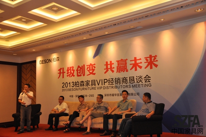 會議特別設(shè)置了論壇交流環(huán)節(jié),由陳總主持,與柏森家具優(yōu)秀的VIP經(jīng)銷商代表針對陳總提出的戰(zhàn)略目標(biāo)對終端主動營銷、團隊建設(shè)與經(jīng)銷商企業(yè)化管理修煉等暢所欲言、分享經(jīng)驗。