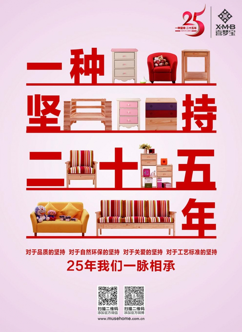 25年來,喜夢寶為每個(gè)中國家庭的美好時(shí)光增添多一種愜意選擇的夢想沒有變,“生活,原本自然”的理念也沒有變。現(xiàn)在的喜夢寶家具兼具感性和理性,無論是原木材質(zhì)、簡約環(huán)保原材料,還是人性化的產(chǎn)品設(shè)計(jì),都在不斷滿足消費(fèi)者對美好家居的追求——健康、自然、環(huán)保、時(shí)尚。