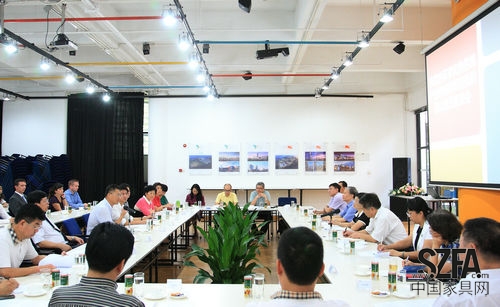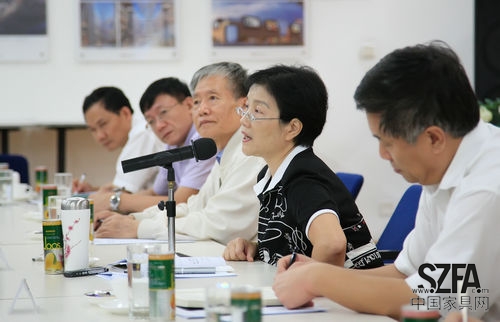 王穗明一行首先參觀了深圳家具行業(yè)協(xié)會的辦公大樓,詳細(xì)了解了協(xié)會的規(guī)劃、展會、教育、研發(fā)、傳媒、檢測的六大模塊。座談會上,深圳市家具行業(yè)協(xié)會執(zhí)行會長侯克鵬作為委員代表首先發(fā)言,他指出,經(jīng)過10年的努力,深圳家具行業(yè)現(xiàn)已成功轉(zhuǎn)型為設(shè)計和創(chuàng)意產(chǎn)業(yè)。如今,家具行業(yè)協(xié)會已和坪山新區(qū)政府達成協(xié)議,將100家深圳品牌企業(yè)的總部、設(shè)計、研發(fā)、營銷和辦公基地集中坪山,希望能取得政府的政策支持和土地資源支持創(chuàng)建總部基地和創(chuàng)意基地;加快進度建立第二個會展中心以更好的搭建深圳的設(shè)計和創(chuàng)意平臺;扶持和建立深圳的設(shè)計品牌和質(zhì)量品質(zhì)品牌。