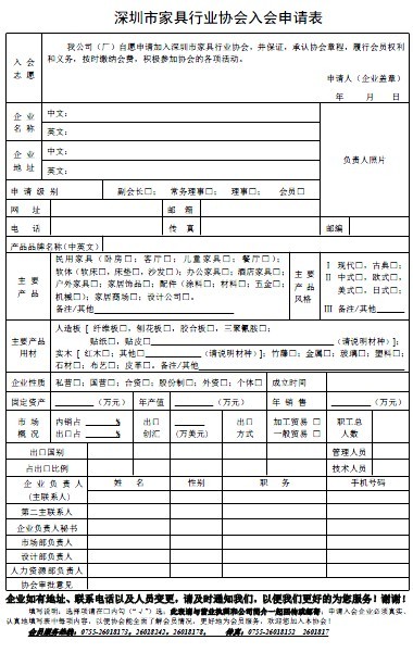 深圳市家具行業(yè)協(xié)會入會申請表