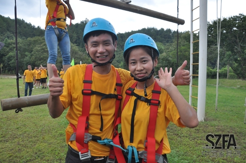 穿上安全服后,學(xué)員們逐個(gè)進(jìn)行高空項(xiàng)目。在搭檔的配合下,隊(duì)員的吶喊鼓勵(lì)下,站在10米高空的每個(gè)人都成功克服心理的恐懼,勇敢挑戰(zhàn)困難,突破自己,激發(fā)了潛能。