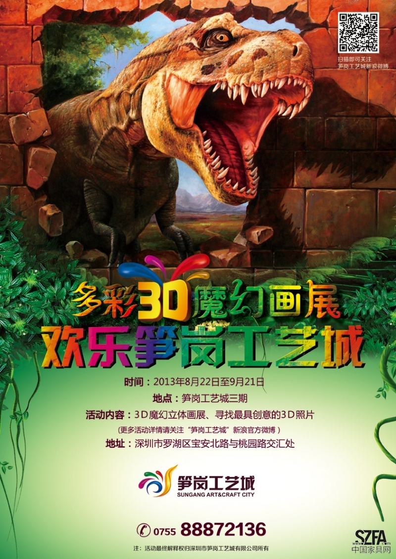 筍崗工藝城一直秉承“多彩生活,藝術(shù)筑家”的建設(shè)理念,努力引入豐富多彩的家居飾品品牌商家,為消費(fèi)者提供更多風(fēng)格更多設(shè)計(jì)流派的家居裝飾選擇。同時(shí),筍崗工藝城一直以來都非常注重設(shè)計(jì)及家飾文化的傳播工作,將商業(yè)與文化完美結(jié)合是筍崗工藝城一直努力的方向。本次活動(dòng)是筍崗工藝城將文化藝術(shù)與家居生活無縫對(duì)接的典范。體驗(yàn)?zāi)Щ?,享受快樂,領(lǐng)取豐富獎(jiǎng)品,“3D魔幻立體畫展”將為您的生活添上奇幻一筆。