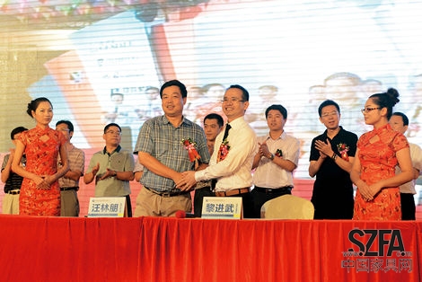寶居樂董事長黎進(jìn)武(右)與居然之家董事長汪林朋(左)簽字