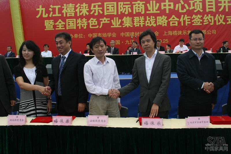 中國(guó)市場(chǎng)學(xué)會(huì)、中國(guó)建材流通協(xié)會(huì)分別授予該項(xiàng)目“中國(guó)市場(chǎng)學(xué)會(huì)全國(guó)重點(diǎn)培育市場(chǎng)”、“中國(guó)建材流通協(xié)會(huì)示范市場(chǎng)”牌匾。廣東省商業(yè)聯(lián)合會(huì)、粵港澳服裝商會(huì)、浙江海寧皮革城、河北白溝箱包城、星美院線、楷模家具、城市之窗家具、慕思寢具等商業(yè)翹楚與九江禧徠樂(lè)國(guó)際商業(yè)中心項(xiàng)目簽訂了全國(guó)特色產(chǎn)業(yè)集群戰(zhàn)略合作協(xié)議。雙方將在品牌共享與輸出、資源合作、人才交流等各方面進(jìn)行深度合作,禧徠樂(lè)國(guó)際商業(yè)中心成為各特色產(chǎn)業(yè)集群進(jìn)入江西的首選和必選,形成了“浙貨入潯、廣貨北上、冀貨南下”的新局面,建成后的九江禧徠樂(lè)商業(yè)中心將聚集各特色產(chǎn)業(yè)集群的優(yōu)質(zhì)品牌和商品,以“工廠直銷、批零兼營(yíng)”的經(jīng)營(yíng)模式,在促進(jìn)就業(yè)和拉動(dòng)城市發(fā)展的同時(shí),打造九江特色產(chǎn)業(yè)集群,調(diào)整九江產(chǎn)業(yè)結(jié)構(gòu),增強(qiáng)城市輻射能力,強(qiáng)勢(shì)構(gòu)建九江核心競(jìng)爭(zhēng)力,使九江成為贛鄂湘皖商貿(mào)中心型城市。