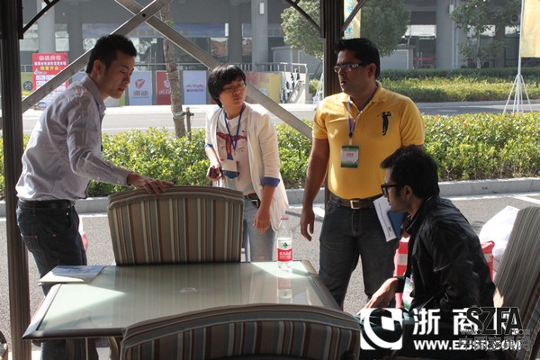 除了各式各樣的戶外家具展品,摩肩接踵的人群里不時走過幾個金發(fā)碧眼的外國人。