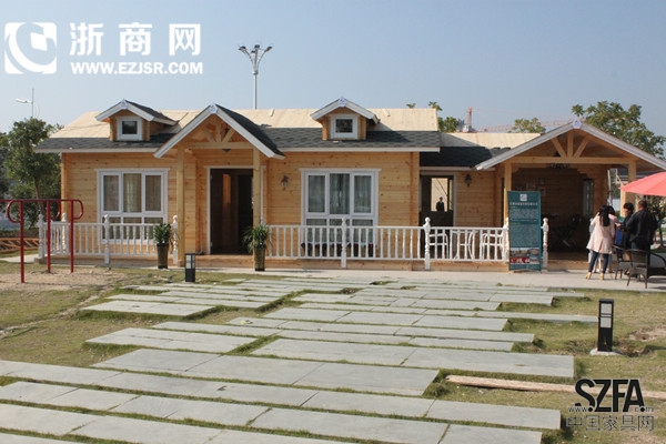 展會上,一幢全原木結(jié)構(gòu)的小別墅引來了許多群眾的圍觀。