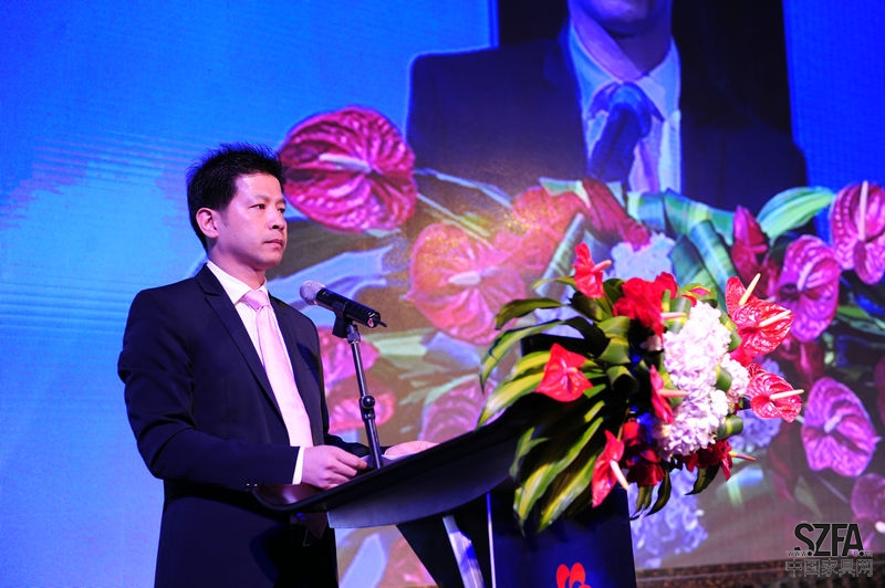 品牌供應(yīng)商:順德家具品牌聯(lián)盟主席、華倫蒂詩(shī)家具有限公司董事長(zhǎng) 周振揚(yáng)先生發(fā)言