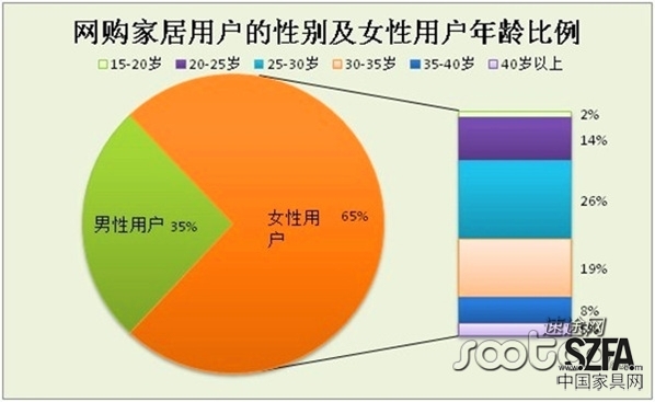 目前,我國家居網(wǎng)購的主力仍然以女性用戶為主,占比達65%,男性占比僅為35%。我國網(wǎng)購市場的整體比例也仍然以女性用戶為主,女性用戶喜歡去網(wǎng)上比較商品的價格、產(chǎn)品信息等。對于我國家居市場來說,女性對于家居的審美往往會比男性比較敏感,對于房子裝修等問題也是以女性用戶為主導(dǎo)意見。在女性用戶中,25-30歲的女性用戶占比達到26%。這部分人群處于結(jié)婚和即將結(jié)婚階段,而對于中國大多數(shù)人來說,結(jié)婚的前提主要是房子,而對于房子的裝修,往往以女性意見為參考。其次是30-35歲的女性用戶,占比達到19%。20-25歲的女性網(wǎng)購家居的比例達到了14%,這部分人群是網(wǎng)購的主要人群,對于價格比較敏感,在購買時更多的會選擇網(wǎng)絡(luò)購物。15-20歲之間的女性用戶幾乎沒有網(wǎng)購家居的習(xí)慣,占比僅為2%。35-40歲的女性用戶網(wǎng)購家居的比例為8%,40歲以上的女性用戶網(wǎng)購家居比例僅為5%。