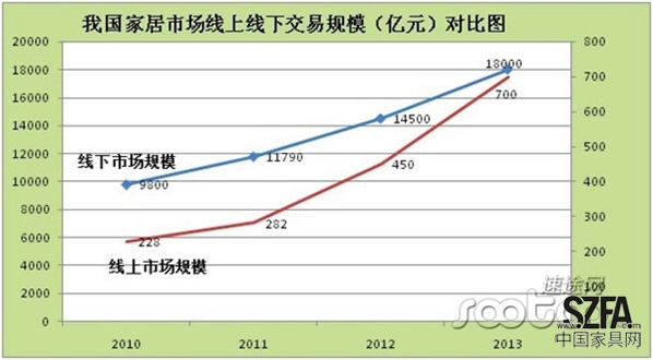 2013年家居市場線下規(guī)模18000億,線上僅700億元