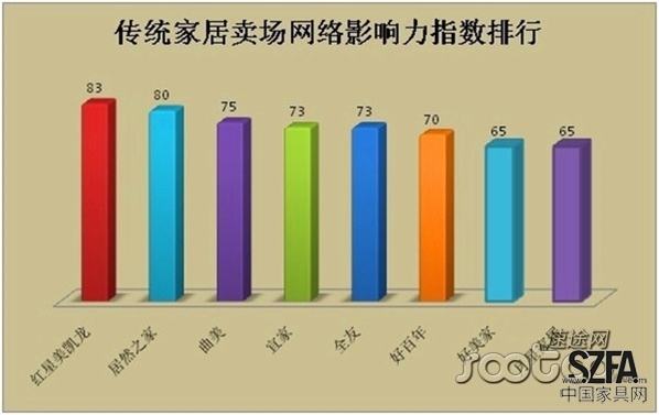 傳統(tǒng)家居賣場網(wǎng)絡(luò)影響力指數(shù)排行紅星美凱龍排名第一