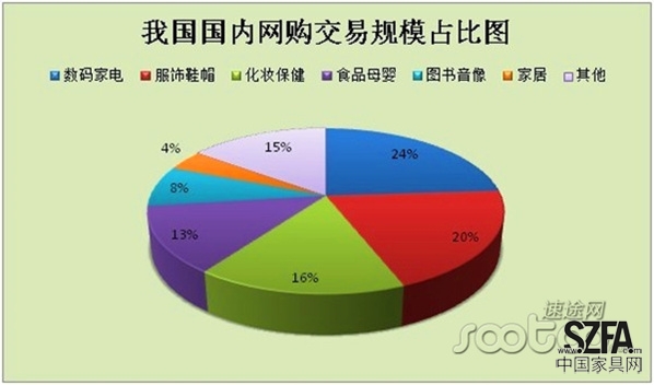 網(wǎng)購交易規(guī)模中,家居網(wǎng)購交易規(guī)模僅占4%