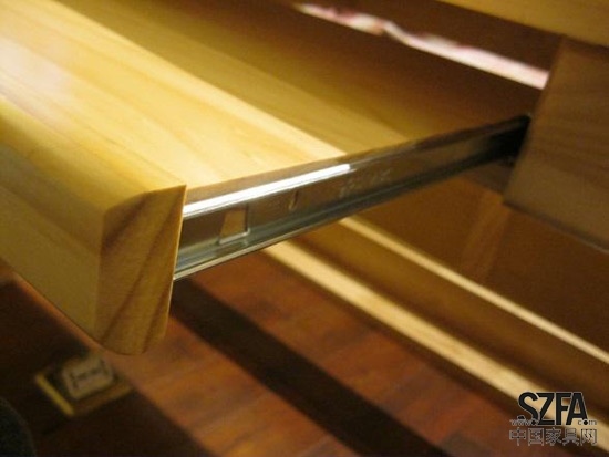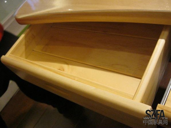 打開(kāi)抽屜我們可以看到,整個(gè)抽屜內(nèi)外都是采用原木,用材相當(dāng)?shù)睾竦?,這是市面上所少有的。表面打磨光滑,無(wú)毛刺。書(shū)桌臺(tái)面下非常貼心地的安置了抽屜,如此,一些不愿擺放桌面的零碎雜物或貴重品都可收納其中。