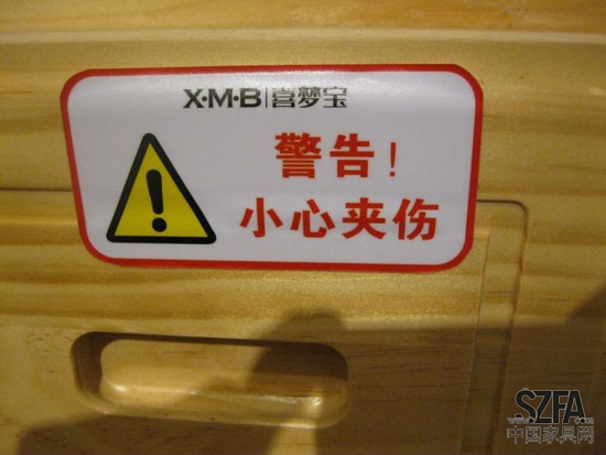 柜體上貼著醒目的“小心夾傷”警告標(biāo)簽,提醒了家長(zhǎng)們應(yīng)該注意的方面,保證了孩子的安全使用。
