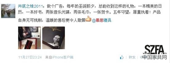 安徽的一位微博用戶(hù)發(fā)微博稱(chēng):“在沒(méi)有成立自己的小家庭前,我就有個(gè)夢(mèng)想買(mǎi)屬于我的慕思,我和老公一直努力,終于攢夠錢(qián)去慕思買(mǎi)了自己喜歡的床具和床墊……因?yàn)槟剿?,給了我們拼搏的動(dòng)力,今后我們還要和慕思一起繼續(xù)奮斗!”