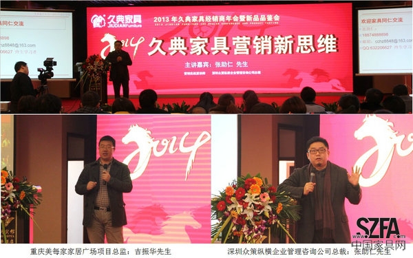 當(dāng)天下午在以“2014久典家具營(yíng)銷新思維”為主題的會(huì)議上,久典家具董事長(zhǎng)葉海云對(duì)2013年的工作情況進(jìn)行了總結(jié),2013年在久典家具和全國(guó)經(jīng)銷商的共同努力之下,獲得了可喜的業(yè)績(jī),增強(qiáng)了未來(lái)良好發(fā)展的信心。同時(shí)向全國(guó)的經(jīng)銷商展示了2014年的公司發(fā)展規(guī)劃,規(guī)劃中指出,2014年推出1萬(wàn)平米的專業(yè)定制生產(chǎn)線,將全面實(shí)現(xiàn)“實(shí)木板式化”的生產(chǎn)模式,并在市場(chǎng)服務(wù)、生產(chǎn)制造方面將全面推行改革項(xiàng)目,提升久典家具品牌的服務(wù)競(jìng)爭(zhēng)力。會(huì)議中,特邀嘉賓,重慶美每家家居廣場(chǎng)項(xiàng)目總監(jiān):吉振華先生,深圳眾策縱橫企業(yè)管理咨詢公司總裁,營(yíng)銷實(shí)戰(zhàn)派講師:張助仁先生,為全國(guó)的來(lái)賓共同探討了2014久典家具營(yíng)銷新思維課程;