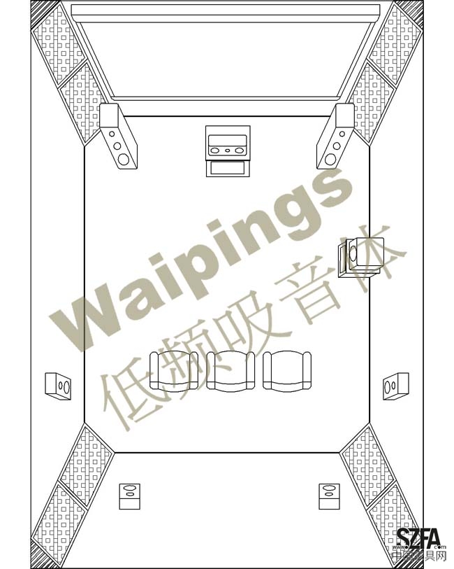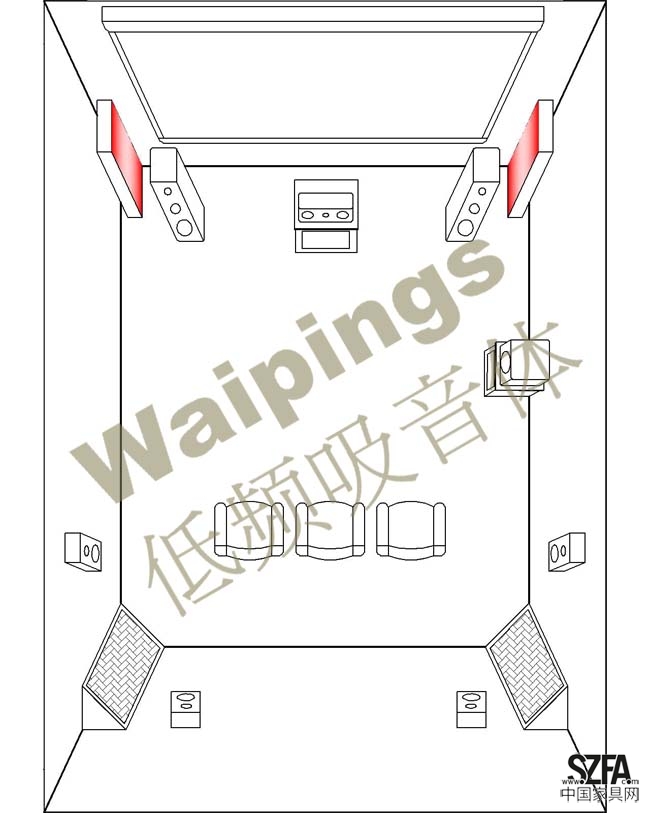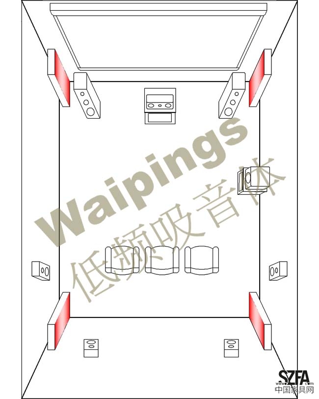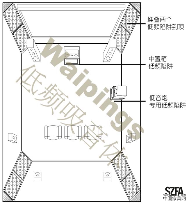 對于后墻或后墻沒有空間的環(huán)境,可以選擇在任一端放置低頻陷阱 直到天花。