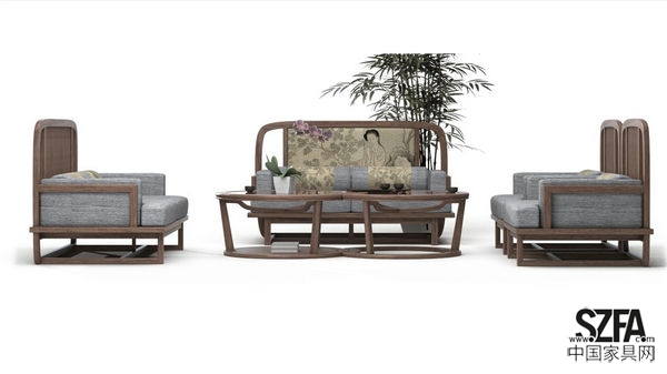取形自“靠山面水”,中華傳統(tǒng)的家居觀念。沙發(fā)形態(tài)內(nèi)斂,方圓兼得。茶幾相生相依,似水漣漪。沙發(fā)和茶幾相搭,順風(fēng)順?biāo)蛔缘谩?/p>