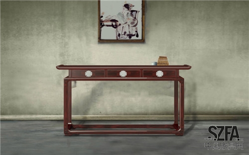 此廳柜以現(xiàn)代家居功能需要結合傳統(tǒng)家具的裝飾元素予以規(guī)劃設計,再結合浮雕、鏤刻及透空開光等裝飾手法,在整體端正敦厚的造型風格中點綴以精致與空靈,意在呈現(xiàn)寓巧于拙,寓美于樸之韻味。