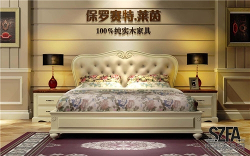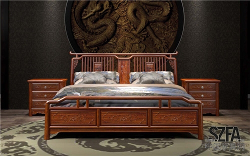 此款床的輪廓和轉折部分由對稱而富有節(jié)奏感的曲線和曲面構成,并裝飾仿皮等,結構簡練,線條流暢,色彩富麗,藝術感強,給人的整體感覺華貴優(yōu)雅,十分莊重。
