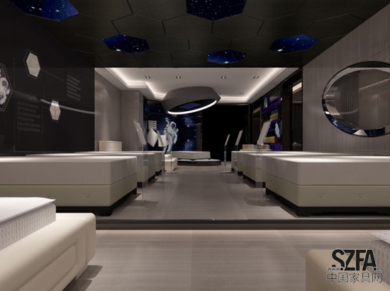本案以“太空艙”為核心設(shè)計(jì)主題,表現(xiàn)科技前衛(wèi)、現(xiàn)代時(shí)尚,以模擬“太空”場景為設(shè)計(jì)表現(xiàn)。外部以個(gè)性“情景櫥窗”為視覺主線,內(nèi)部以深色為主要色調(diào),突出時(shí)尚、科技感的同時(shí),營造睡眠中心的濃厚氛圍。