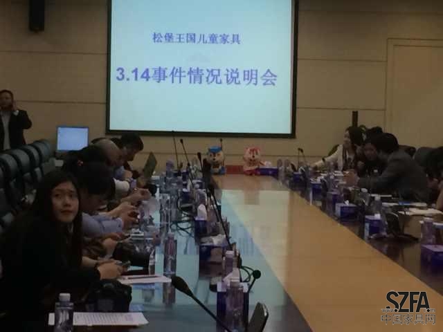 2014年3月19日,由松堡王國、深圳家具協(xié)會傳媒中心聯(lián)合主辦的“松堡王國3.14事件情況說明會”在深圳會展中心舉行?,F(xiàn)場共有近50家媒體參加了此次“3.14事件“說明會,與會松堡王國向廣大媒體朋友們鄭重澄清”3.14事件“中關(guān)于我司不實(shí)信息的報(bào)道。