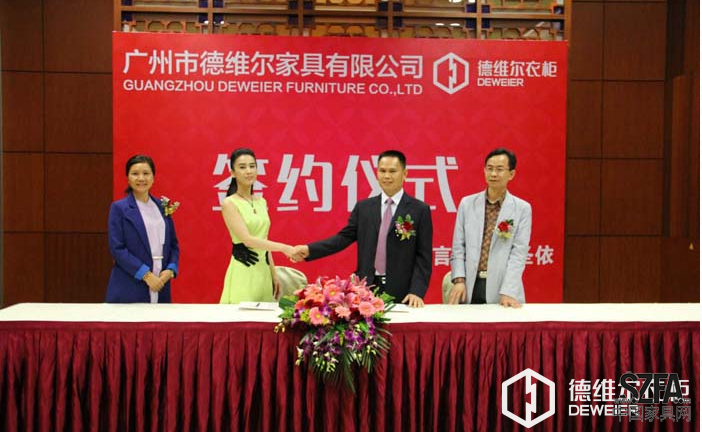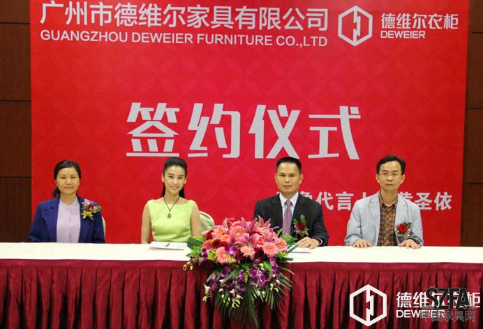 2014年3月28日,德維爾衣柜簽約國際著名影星黃圣依品牌代言發(fā)布會在廣州白云國際會議中心正式舉行,德維爾衣柜董事長殷衛(wèi)洪、國際著名影星黃圣依共同出席了發(fā)布會。
