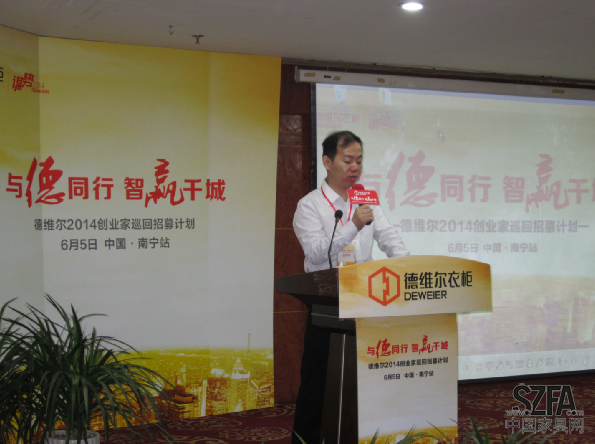 2014年6月5日,德維爾“與德同行,智贏千城”創(chuàng)業(yè)家招募計(jì)劃首站在廣西第一大城市、北部灣經(jīng)濟(jì)區(qū)核心城市、華南地區(qū)特大城市、中國東盟博覽會永久舉辦地——南寧圓滿召開。這是繼德維爾衣柜在2014年與貴仁相助營銷顧問公司達(dá)成戰(zhàn)略合作、提出“謀勢2014,謀動2015,謀贏2016”三年規(guī)劃、推出行業(yè)至高環(huán)保木態(tài)板、攜手國際巨星黃圣依之后的又一重大舉措。德維爾營銷副總翁振暉先生,德維爾戰(zhàn)略合作伙伴、家居建材行業(yè)頂尖顧問公司——廣州貴仁相助營銷顧問公司創(chuàng)始人韓鋒老師,以及區(qū)域營銷精英、廣西大部分地區(qū)意向合作伙伴匯聚一堂,共計(jì)50余人參加會議,現(xiàn)場簽約加盟10家,斬獲豐碩成果,宣告德維爾渠道深耕戰(zhàn)略不斷下沉,以品牌高溢價、加盟政策與優(yōu)惠活動為杠桿,扶持新興市場加盟商做大做強(qiáng),共享家居財(cái)富盛宴。