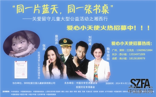 近年來,留守兒童所引發(fā)的一些社會問題,使這個弱勢群體備受社會關(guān)注,作為最具文化特色品牌,松堡王國兒童家具長期關(guān)注孩子的健康成長,時刻秉持“愛孩子、愛地球、愛未來”的核心文化理念,致力為孩子打造一個健康智慧成長平臺,擔(dān)當(dāng)社會責(zé)任義不容辭,不惜重金打造“同一片藍(lán)天 同一張書桌”關(guān)愛留守兒童湘西行大型公益活動,在全國范圍內(nèi)掀起一場“護(hù)蕊”行動;與此同時,松堡王國重磅推出愛心大咖秀鉅惠總動員系列優(yōu)惠活動,親情回饋廣大消費(fèi)者,優(yōu)惠力度空前絕后,史無前例; 此次活動從6月7日至8月9日在深圳、廣州、長沙、合肥等地同時開展,您將有機(jī)會和您的孩子與劉愷威、鞠萍姐姐等明星一起參加一次終身難忘的愛心心靈免費(fèi)體驗之旅,和一場難以用金錢衡量的愛心教育之旅,名額有限;同時,您的孩子有才藝的話同樣有機(jī)會哦!關(guān)愛留守兒童,讓您的孩子得到一次靈魂的升華,讓我們一起行動起來吧!