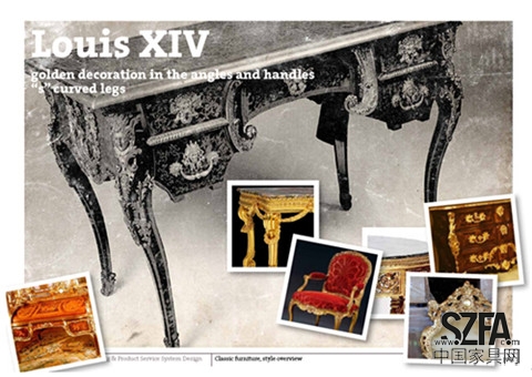 對于原型模仿而言,相對比較直接和直觀,無需贅述。但即便如此,也得緊緊抓住原型中的典型特征。如:路易十四式風格家具中最突出的特征是在家具本體的角部與拉手部位有黃金裝飾,另一個重要的體態(tài)特征是桌椅類家具常用“S”型彎腿。如圖1所示。