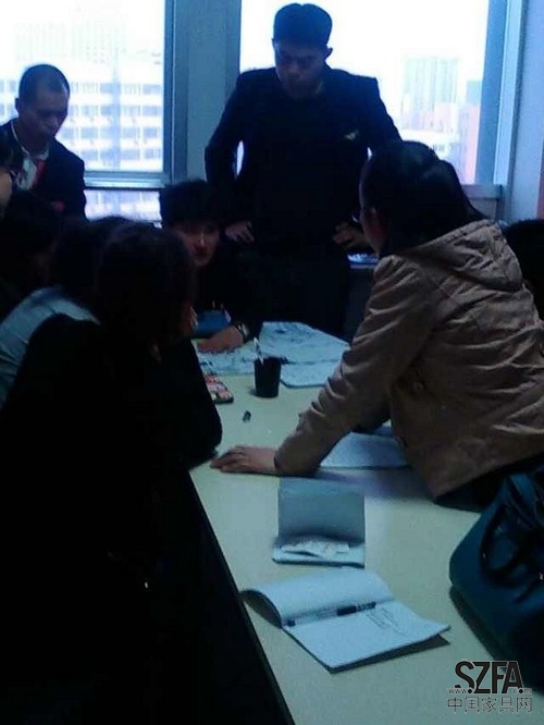 (圖為2014年4月19日威海,中團(tuán)項(xiàng)目應(yīng)急小組在活動(dòng)前一天晚上召開(kāi)緊急會(huì)議)
