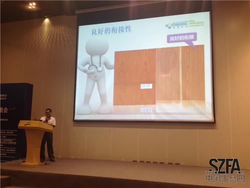 展辰涂料UV及水性漆事業(yè)部水性漆項(xiàng)目經(jīng)理陳傳印在酒會(huì)上做了《水性涂裝方案在美式涂裝上的應(yīng)用》的主題匯報(bào),根據(jù)目前當(dāng)下流行的各種美式涂裝,結(jié)合已在成功應(yīng)用的成功案例,向與會(huì)嘉賓們介紹了展辰的水性產(chǎn)品涂裝方案。展辰涂料以深耕水性木器漆行業(yè)多年的專(zhuān)業(yè)經(jīng)驗(yàn),已成功幫助白玉蘭、曲美、朝陽(yáng)及富凱等知名企業(yè)完成水性環(huán)保涂裝的轉(zhuǎn)型,使其擺脫環(huán)保壓力的同時(shí)取得企業(yè)的迅猛發(fā)展。