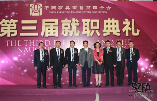 2014年9月4日,中國家具銷售商聯(lián)合會(以下簡稱“家商聯(lián)”)第三屆就職典禮在東莞厚街名家具展3號館二樓宴會廳隆重舉行。北京克拉斯家居集團董事長王大為先生當(dāng)選新任會長,河北創(chuàng)典居家具董事長趙建軍先生當(dāng)選監(jiān)事長,郭新文先生當(dāng)選秘書長,帶領(lǐng)全體執(zhí)行會長宣誓就職。