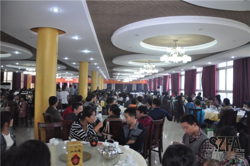 當(dāng)天中午,伴隨著載歌載舞的文藝節(jié)目,容納600余人的商務(wù)年會酒店大堂舉行了盛大的招待午宴。圣皇家居集團(tuán)商務(wù)年會圓滿落下帷幕!