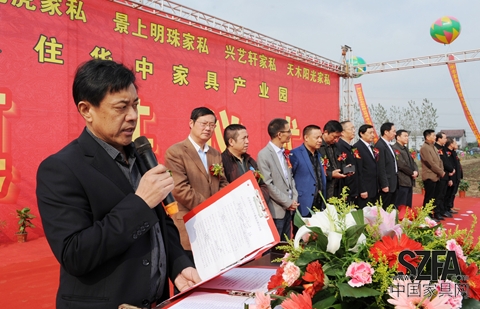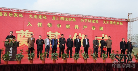 市委副書記龔定榮,武漢市化工區(qū)管委會(huì)副主任錢方信,湖北省家具協(xié)會(huì)會(huì)長(zhǎng)秦志江,市政府副市長(zhǎng)李江鴻,總口農(nóng)場(chǎng)黨委書記饒開洲,湖北省家具協(xié)會(huì)秘書長(zhǎng)謝文橋,湖北板式家具協(xié)會(huì)秘書長(zhǎng)顧祥利,四川省質(zhì)量協(xié)會(huì)秘書長(zhǎng)蔣安平,華中家具產(chǎn)業(yè)園負(fù)責(zé)人胡曉寒,以及5家武漢家具企業(yè)董事長(zhǎng)等出席奠基儀式,并為企業(yè)入駐奠基培土??偪谵r(nóng)場(chǎng)場(chǎng)長(zhǎng)王明耀主持奠基儀式。