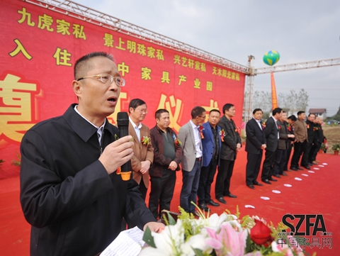 奠基儀式上,李江鴻代表市政府致辭。5家武漢家具企業(yè)代表、九虎家私有限公司董事長(zhǎng)孫明紅發(fā)言, 湖北省家具協(xié)會(huì)會(huì)長(zhǎng)秦志江、華中家具產(chǎn)業(yè)園負(fù)責(zé)人胡曉寒、武漢市化工區(qū)管委會(huì)副主任錢方信在奠基儀式上講話。