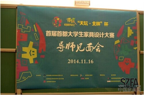 11月16日上午“尋你:校園好設(shè)計(jì)”——“天壇•北林”杯首屆首都大學(xué)生家具設(shè)計(jì)大賽導(dǎo)師見面會(huì)在北京林業(yè)大學(xué)順利舉行。特色導(dǎo)師賽制全面啟動(dòng),堪稱家具界的“中國好聲音”。六位導(dǎo)師于歷戰(zhàn)、高楊、張帆、蔣紅斌、楊瑋娣、朵寧親臨現(xiàn)場,為心儀的選手“轉(zhuǎn)身”。北京林業(yè)大學(xué)材料院副院長吳慶利、北京金隅天壇家具股份有限公司戰(zhàn)略發(fā)展部部長于鵬飛、人力資源部部長成俊、研發(fā)中心主任施海東受邀蒞臨現(xiàn)場。