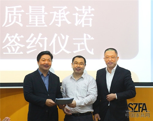 深圳市家具行業(yè)協(xié)會執(zhí)行會長侯克鵬、秘書長洪小惠、副秘書長劉麗娜,深圳市家具行業(yè)協(xié)會會長、深圳市左右家私有限公司總裁黃華坤、香港雅蘭集團譚中兵、深圳市森堡家私有限公司李友忠,深圳市新福牌家具用品有限公司總經(jīng)理陳燦陽及近五十家第一批參與優(yōu)品評定企業(yè)主要供應商出席并見證了簽約過程。