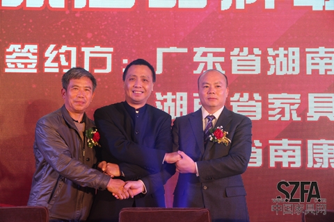 在協(xié)會成立一周年之際,廣東省湖南商會家具協(xié)會、湖南省家具行業(yè)協(xié)會和江西贛州南康區(qū)湖南商會聯(lián)合倡導成立“粵湘家居品牌聯(lián)盟”,其宗旨就是通過廣泛聯(lián)合湘、粵、贛三地的湖南籍家具企業(yè),充分發(fā)揮品牌整合和資源互補,共同打造“粵湘家居品牌”,為湖南家具人爭光,為粵湘贛家居產(chǎn)業(yè)的大發(fā)展貢獻一份力量。三方在晚會現(xiàn)場簽訂了聯(lián)盟意向書,邁出了聯(lián)盟的第一步。
