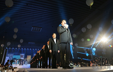 隨后深圳家具十五位品牌先鋒分列兩行,歡迎尊貴的嘉賓上臺(tái)接受深圳家具的隆重致謝。他們是——中國(guó)家具協(xié)會(huì)理事長(zhǎng)朱長(zhǎng)嶺,中國(guó)家具協(xié)會(huì)副理事長(zhǎng)兼秘書長(zhǎng)張冰冰,紅星美凱龍家居集團(tuán)股份有限公司董事長(zhǎng)兼CEO 車建新,紅星美凱龍家居集團(tuán)股份有限公司董事、副總裁車建芳,北京居然之家投資控股有限公司總裁汪林朋,全國(guó)工商聯(lián)家具裝飾業(yè)商會(huì)會(huì)長(zhǎng)、月星集團(tuán)董事局主席丁佐宏,香港金馬凱旋集團(tuán)董事長(zhǎng)肖凱旋,香江集團(tuán)董事、香江商業(yè)集團(tuán)總裁翟棟梁,中國(guó)家居品牌聯(lián)盟創(chuàng)會(huì)主席、敏華控股董事局主席黃敏利,簡(jiǎn)愛家居股份有限公司董事長(zhǎng)羅輯俐,深圳市好百年家居連鎖股份有限公司董事長(zhǎng)兼總裁韓茂勝,中國(guó)家具經(jīng)銷商聯(lián)合會(huì)會(huì)長(zhǎng)、北京克拉斯家居有限公司董事長(zhǎng)王大為。
