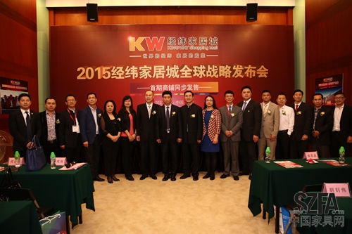 3月 18日,適逢第35屆中國廣州國際家具博覽會開幕之際,“取勢行業(yè)經(jīng)緯,共贏全球家居”2015經(jīng)緯家居城全球戰(zhàn)略發(fā)布會于廣州琶洲展覽館A區(qū)花城廳隆重 舉行。中國家具協(xié)會理事長朱長嶺,中國對外貿(mào)易廣州展覽總公司總經(jīng)理李德穎,廣東省家具協(xié)會會長王克,中國家居品牌聯(lián)盟主席劉永康,河北省家具協(xié)會會長李 鳳婕,順德家具品牌聯(lián) 盟主席周振揚(yáng),遼寧省家具協(xié)會會長祖樹武、秘書長白紅,北京家具行業(yè)協(xié)會常務(wù)副會長何法澗、副會長任淑琴,天津市家具協(xié)會秘書長高秀芝,經(jīng)緯家居城董事會 成員黎經(jīng)煒、胡釗偉、張志成、黎經(jīng)林、林永勤等出席了本次活動。廣東電視臺房產(chǎn)頻道、廣州電視臺、廣東南方電視臺、廣州日報(bào)、南方都市報(bào)、羊城晚報(bào)、香港 文匯報(bào)、民營經(jīng)濟(jì)報(bào)、21世紀(jì)經(jīng)濟(jì)報(bào)道、鳳凰家居、騰訊家居、人民網(wǎng)、新浪網(wǎng)、搜房網(wǎng)、新浪家居、騰訊大粵網(wǎng)家居頻道、網(wǎng)易家居、居舍亞太家具等50多家 來自全國知名中外媒體進(jìn)行現(xiàn)場采訪報(bào)道。發(fā)布會由經(jīng)緯家居城顧問莊子標(biāo)主持。