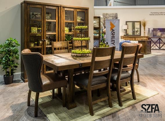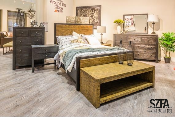 在此次展會(huì)上,Ashley愛(ài)室麗家居品牌在其千余平方的超大展廳內(nèi),展示了60多套美式家居產(chǎn)品并涵蓋客廳、臥室、餐廳和書房等全屋家具,更為每一種風(fēng)格系列搭配了精美的家居飾品,床品、燈具、花瓶、抱枕等一應(yīng)俱全,充分展示了品牌及公司的雄厚實(shí)力。眾多靈感涌動(dòng)的新品配上美輪美奐的家居飾品。其中全新推出的新品Urbanology都市工業(yè)風(fēng)憑借其鮮明的個(gè)性更是令消費(fèi)者流連忘返。Urbanology都市工業(yè)風(fēng)的精彩在于通過(guò)簡(jiǎn)練的線條和做舊的飾面讓粗獷的整體風(fēng)格中體現(xiàn)出精致,再通過(guò)舒適柔軟與自然感官的元素將精致細(xì)節(jié)融入粗曠的整體風(fēng)格之中,顯得剛?cè)岵?jì),提升了設(shè)計(jì)品味及舒適度。