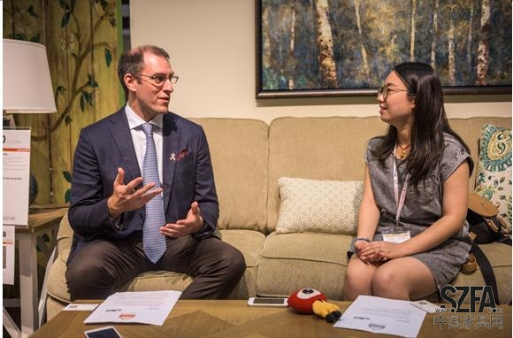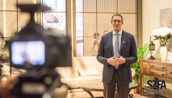 Paul Dotta 先生為各大主流媒體介紹Ashley愛(ài)室麗家居展位