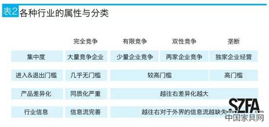 對于完全競爭行業(yè)而言,不僅競爭企業(yè)眾多,而且進入與退出的門檻低、產(chǎn)品同質化現(xiàn)象嚴重,還有產(chǎn)業(yè)鏈信息完善,企業(yè)很難長時間持有不被別人模仿的核心技術,所以是典型的進入容易做好難的行業(yè)。表2是各種行業(yè)的屬性與分類。