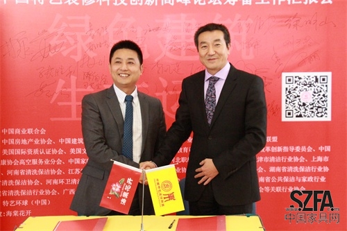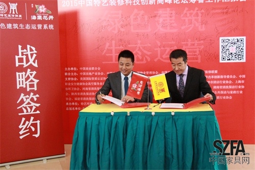 2015中國特藝裝修科技創(chuàng)新高峰論壇組委會與總冠名單位海棠花開戰(zhàn)略簽約,攜手打造綠色建筑生態(tài)運(yùn)營系統(tǒng)