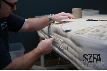 VISPRING從英國邀請了品牌的床墊縫制大師Andy為到場的嘉賓現(xiàn)場演示手工床墊縫制的精湛工藝