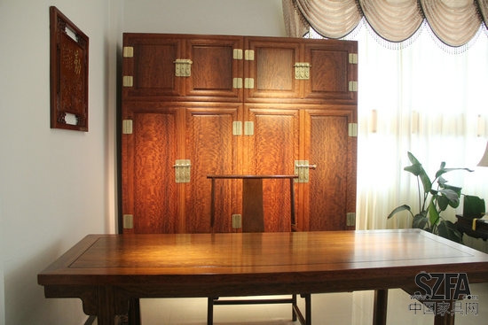 還如一木三開的花酸枝明式光身書案、大紅酸枝合家歡十一件套等等,都是當(dāng)代家具界難得一見的珍品,是最有收藏價(jià)值的紅木家具新星。