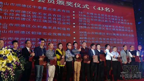 佛山市家具行業(yè)協(xié)會(huì)左伯楊常務(wù)理事長、周衛(wèi)新監(jiān)事長為優(yōu)秀會(huì)員企業(yè)頒獎(jiǎng)