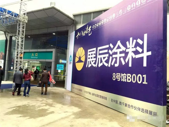 2016年3月16日,展辰涂料十八般漆藝如期而至,8號(hào)館B001,展館入口處傲然屹立著展辰涂料的廣告牌。展辰涂料展廳就位于此入口的第一個(gè)位置,展辰十八般漆藝吸引了眾多觀展人駐足咨詢。